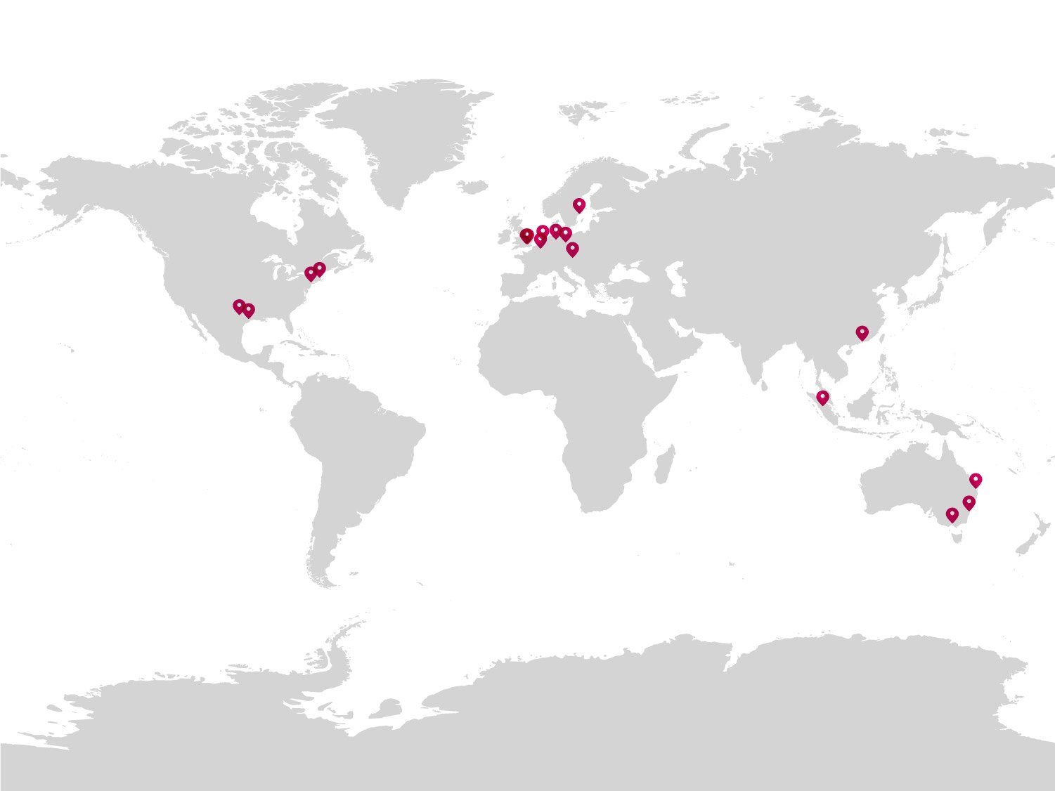 Fairs can be found in London, New York, Amsterdam, Austin, Berlin, Boston, Brisbane, Brussels, Hamburg, Hong Kong, Houston, Melbourne, Singapore, Stockholm, Sydney, and Vienna.